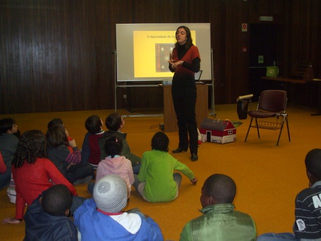 A primeira actividade, no início da tarde de sexta, foi mostrar aos alunos de um Jardim Infantil que afinal, embora ainda não consigam entender aqueles montinhos de letras que se seguem a um ritmo descontínuo e que enchem grandes livros, Já sabem ler! Pois é, a verdade é que a leitura não se limita à descodificação de letras. Há todo um mundo de sinais que a todo o momento vamos lendo e apreendendo e que, com a ajuda da imaginação, podem construir verdadeiras histórias de encantar! É só estar atento para os... ler!